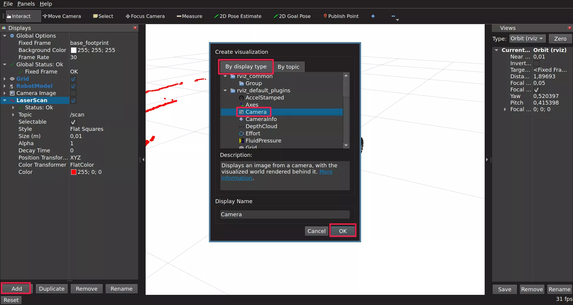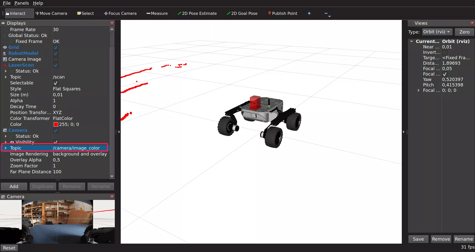 Now, open RViz by typing rviz2 in the terminal, or, if you have the leo_viz