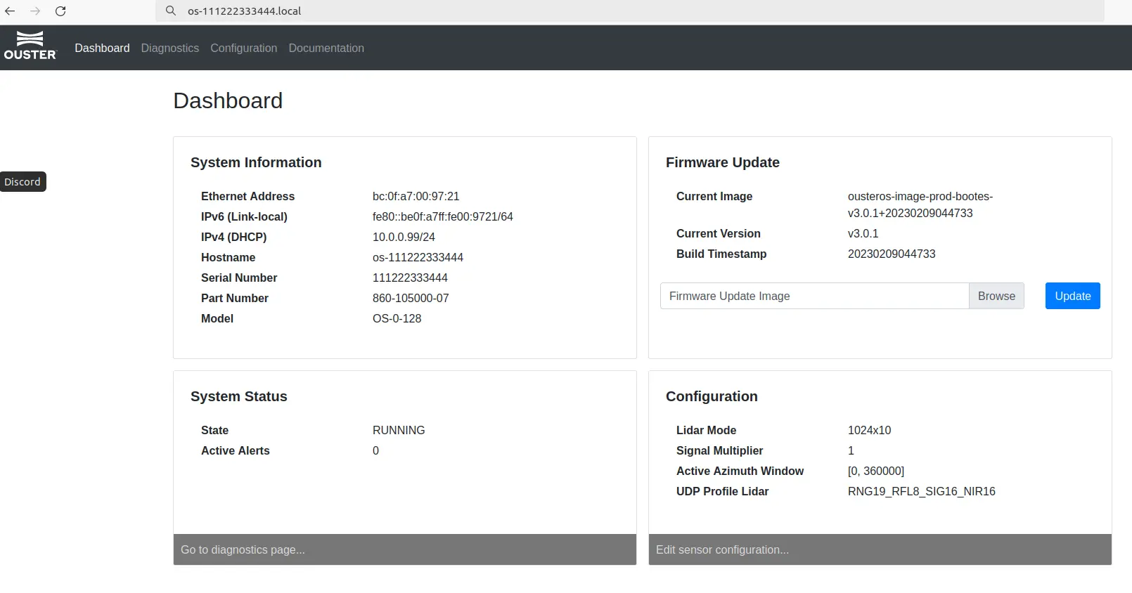 If you wish to change Ouster sensor configuration, you can do so later - when configuring ROS node, as this node can overwrite some changes made inside the web interface.