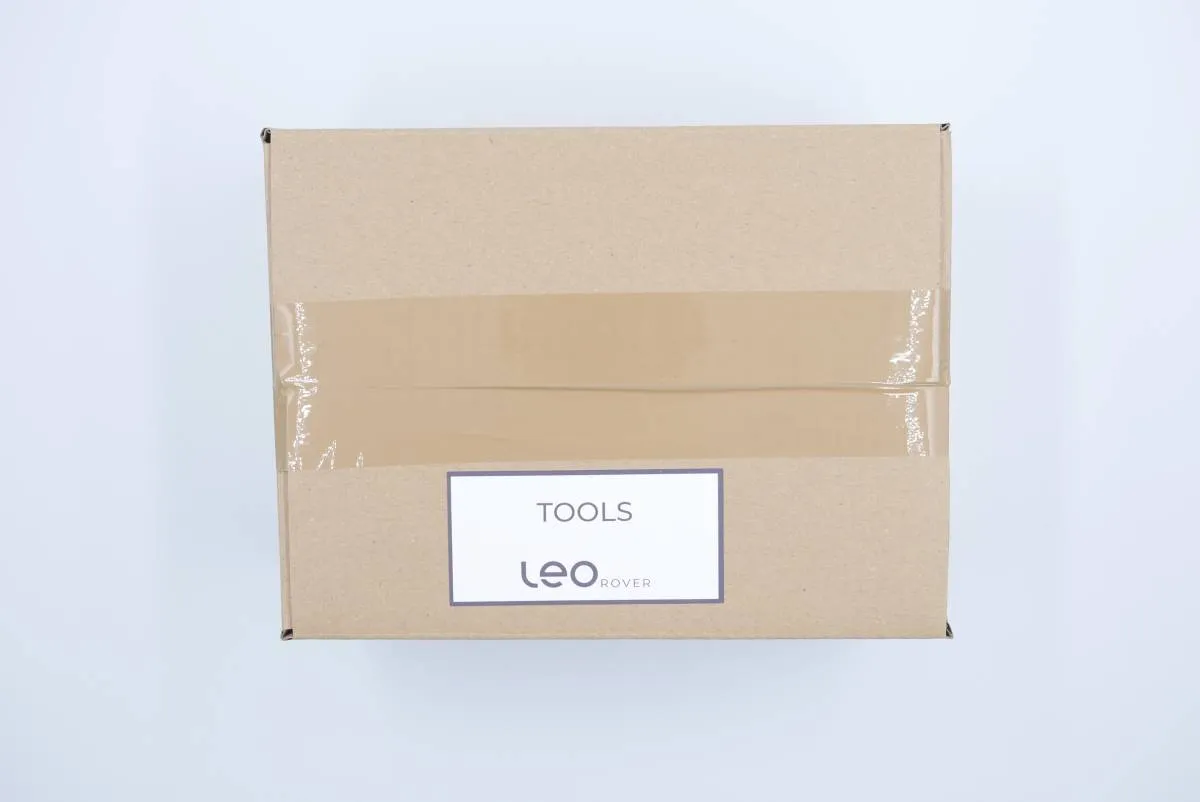 In this box you'll find all the tools needed to assemble the Leo Rover Developer Kit.A plastic tray to store screws during the assembly steps.A 3D-printed microSD card extraction tool that becomes handy when you need to disconnect the microSD card from the internal RaspberryPi port.